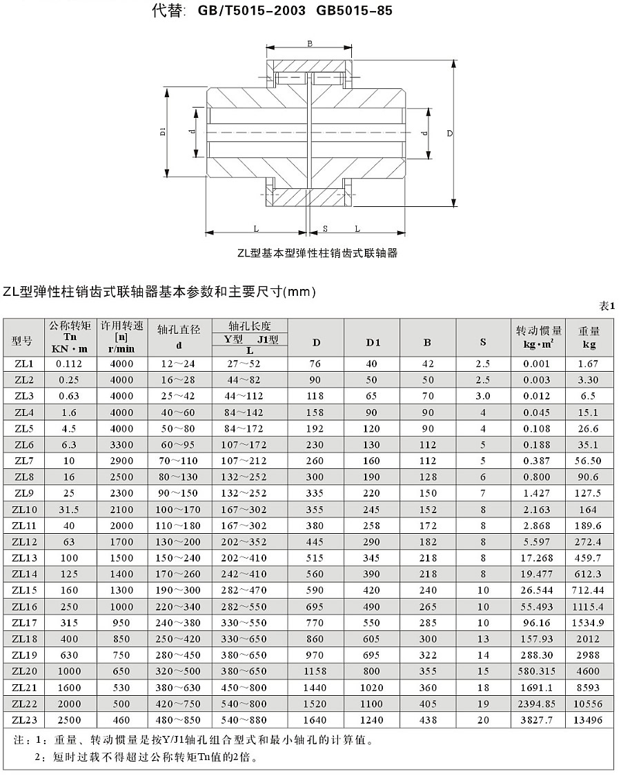 ZL型彈性柱銷齒式聯(lián)軸器 JBTZQ4727-2006